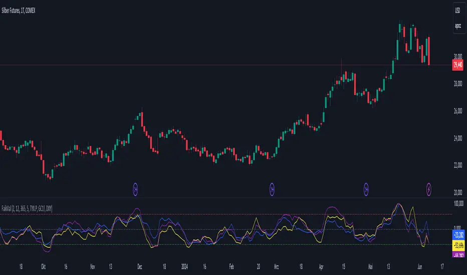 The "FaikVal" indicator is a powerful tool designed to help traders analyze relative price movements between a base asset and up to three comparison assets. This indicator uses exponential moving averages (EMA) and normalization techniques to identify potential overbought and oversold situations.