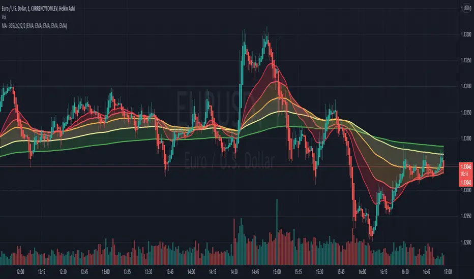 5 Moving Averages based off 365 period moving average, each iteration half of the previous MA Period Length.