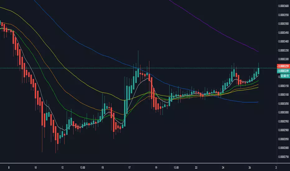 EMA 3 & 8 Crossover is a good method for confirming a coin going to the upside or to the downside.