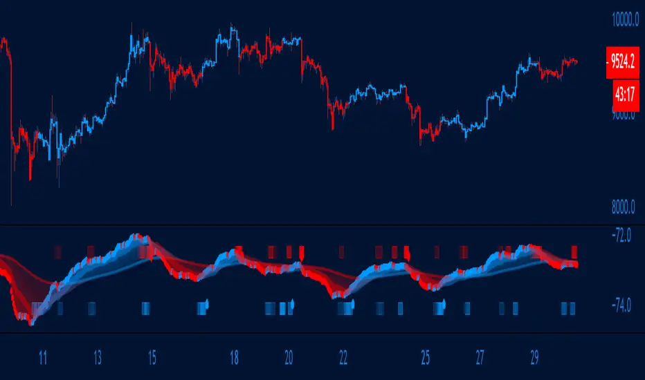 In this updated version, we've added several coloring options that are meant to give context to the larger trend of CogniFI. In addition we've added new signal shapes, that are meant to signal the rise or fall in pressure against the leading COG lines. When multiple square shapes are presented followed by a "labelup" shape, we can assume a healthy rise of COG against pressure. When we see an immediate "Labelup" that is indicative of a forceful move, which could result in a reversal (or the start of a larger trend).