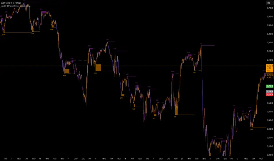 The liquidity swings indicator highlights swing areas with existent trading activity. The number of times price revisited a swing area is highlighted by a zone delimiting the swing areas. Additionally, the accumulated volume within swing areas is highlighted by labels on the chart. An option to filter out swing areas with volume/counts not reaching a user-set threshold is also included.
