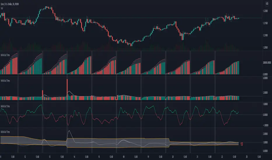 This indicator uses one of two, more subtle ways to calculate both values of the relative volume ratio: current volume:past volume.
