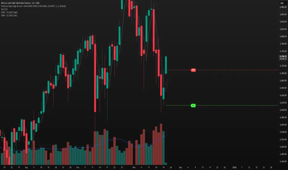 Shows Previous Days High & Low with adjustable time for Futures after hours or regular market
