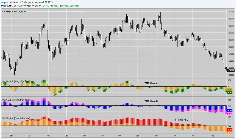 Load the Indicator three times, Turn Off the Other two Waves. For eg., Wave A - Check / Wave B - Uncheck / Wave C - Uncheck. = This will plot Wave A.