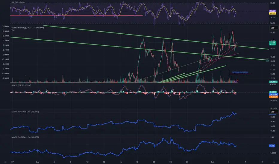When Price < mNAV=1 and Ratio < 1.00 → MARA trades at a discount to BTC NAV (potential mean-reversion if BTC is stable).