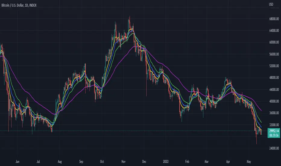 Ok, the rule is you only enter a position when yellow, green and blue cross the purple line upwards.