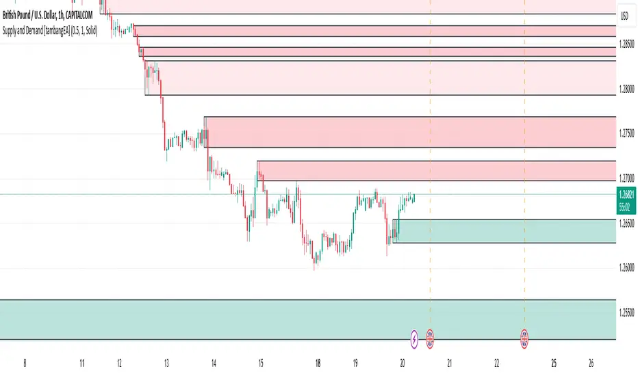 The Supply and Demand [tambangEA] indicator on TradingView is a technical tool designed to help traders identify areas of significant buying and selling pressure in the market. By identifying zones where price is likely to react, it helps traders pinpoint key support and resistance levels based on the concepts of supply and demand. This indicator plots zones using four distinct types of market structures:
