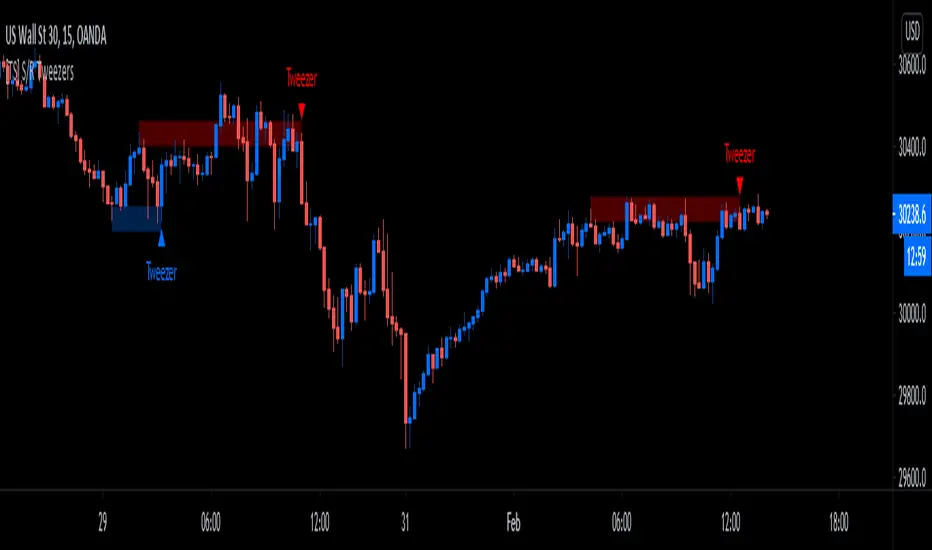 We've also included a S/R Lookback Filter that will search for previous Support/Resistance Zones and only display those Tweezers that are within those zones. The candle lookback period is fully adjustable.