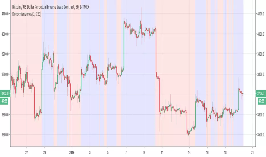 This indicator give the ratio between the high and low of donochian channel and if we take ratio and add it to each other then we can calculate if it + meaning bullish trend or negative meaning bearish trend