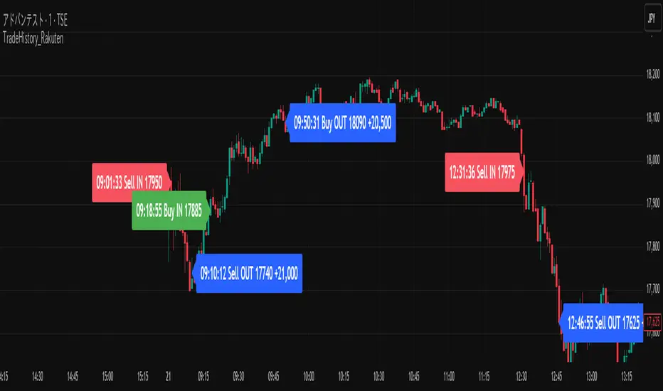 This script automatically displays buy/sell labels on the chart simply by copying and pasting your trade history (execution records) exported from Rakuten Securities in Excel format.