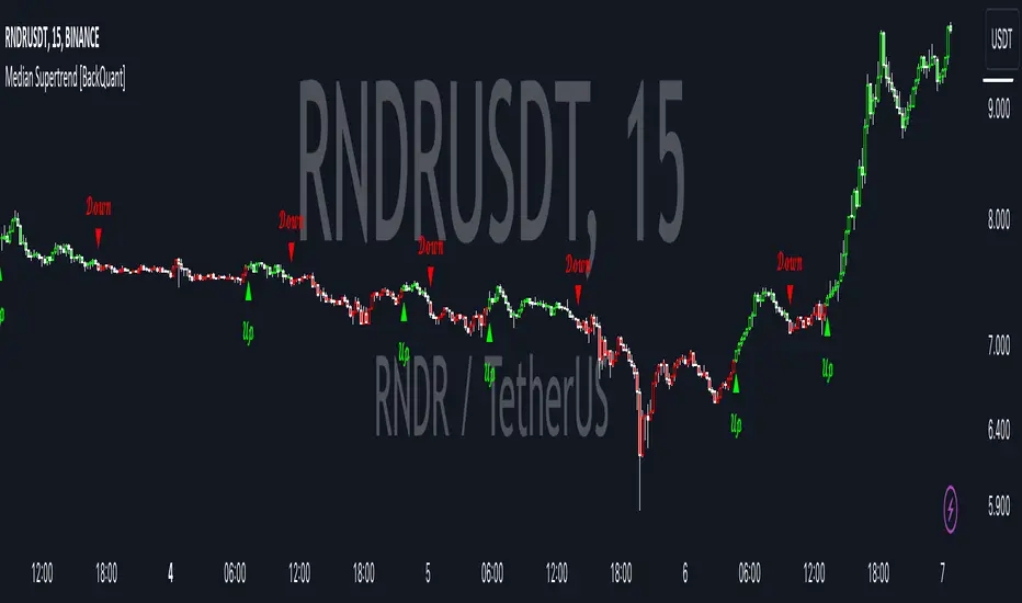 Traders can incorporate the Median Supertrend into their strategies as a standalone indicator for trend following or as a filter in a multi-indicator system. It is particularly useful in markets known for having outliers or sudden price jumps, as the median-based calculation provides a grounded trend analysis. This indicator can be applied across various timeframes and asset classes, making it a versatile tool for day traders, swing traders, and long-term investors alike.