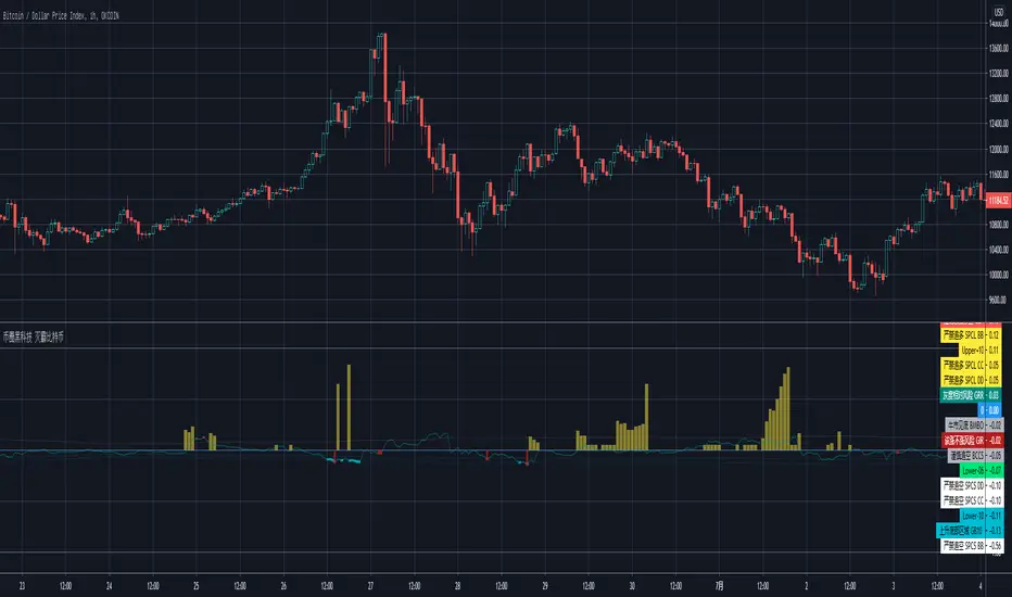 当指标提示爆多警告时候,市场容易突然超级猛烈下跌清算多头仓位,甚至容易形成日线周线级别价格大顶部;When the indicator prompts a burst warning, the market is prone to suddenly and violently fall and liquidate long positions, and it is even easy to form a large peak of the daily or weekly price ;