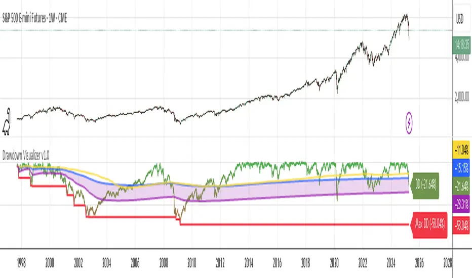 Drawdown Visualizer - Thanks Botnet101 for the original ideaThe Drawdown Visualizer tracks the percentage decline from all-time highs, providing valuable insights into market corrections and potential buying opportunities.
