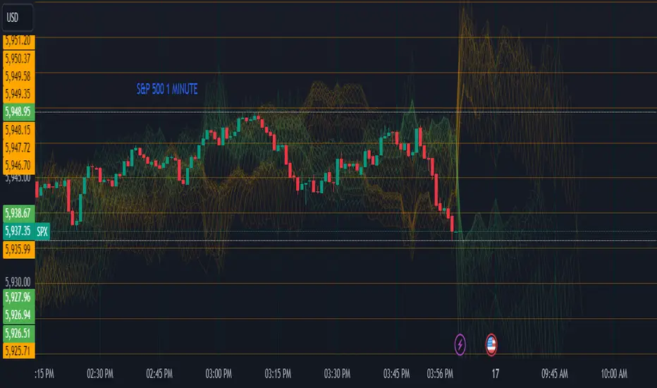 This is a leading indicator designed for the 1 minute chart, and while it works on any time frame, I haven't tested it's practicality outside of the 1 minute chart. This uses historical data and applies statistical analysis to key metrics of momentum. The data is filtered by "time of day" as well as "day of week", but be mindful that the "day of week" option reduces your total amount of data points, and will not work well on new stocks. This indicator also uses binary/gaussian distribution concepts to create channels and pockets which act as seemingly magnetic forces. This is all speculative. Do not use this indicator on its own. This is intended to do nothing more than to show you whether if, on average, the historical data under the same time and rate of change conditions, goes for or against your trade. Use it in conjunction with your most trusted and classic indicators. This can act as a small nudge, letting you now the chances of what you have already established in your mind. This is HIGHLY experimental, made by an amateur, and also very pretty. So, enjoy!