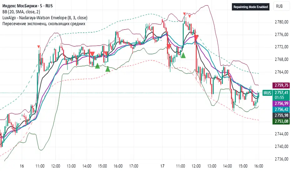 Exponential moving average 9 & 21 crossings with buy/sell signals