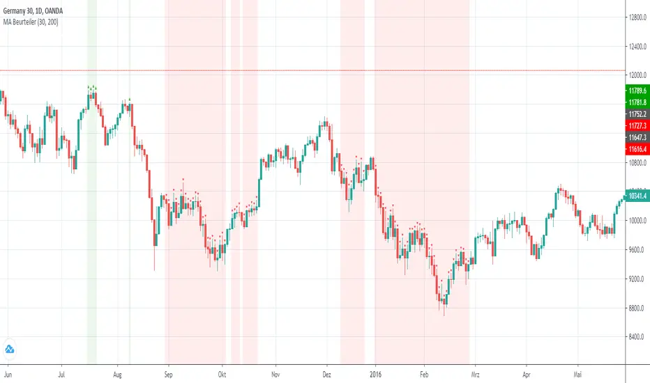 This indicator helps to identify the trend direction and wether the trend is still accelerating or not. The calculation is based on two SMAs and uses the difference between those SMAs.
