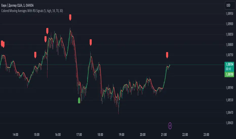 Colored Moving Averages With RSI Signals