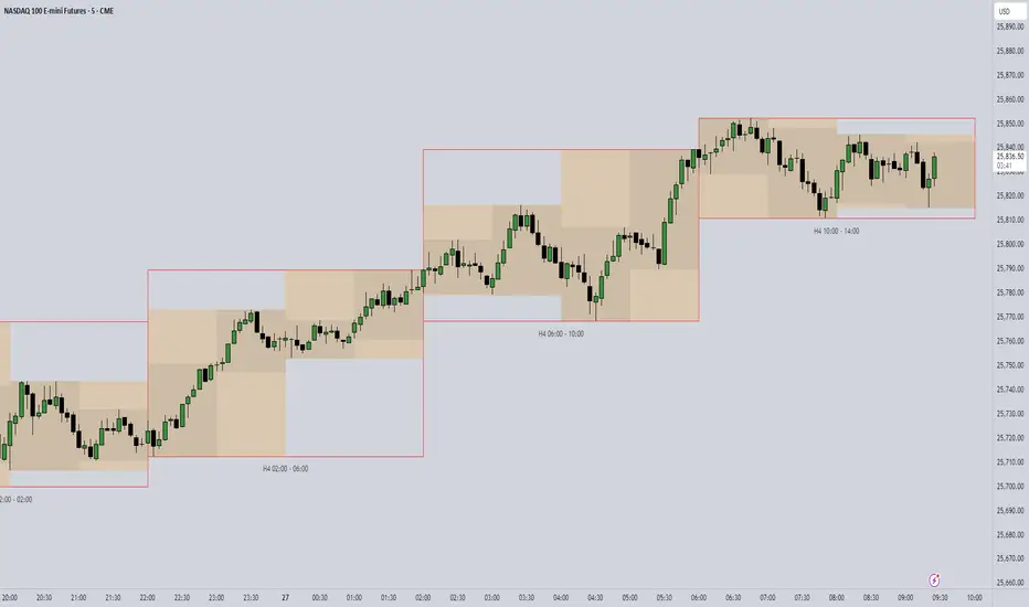 -Session Analysis: Clearly see 4H session boundaries and internal 2H/1H divisions