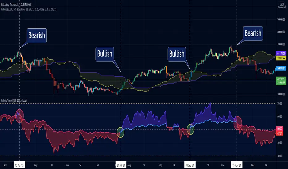 I see that you can use 2 RSI with different periond to suggest Bullish trend and Bearish trend.