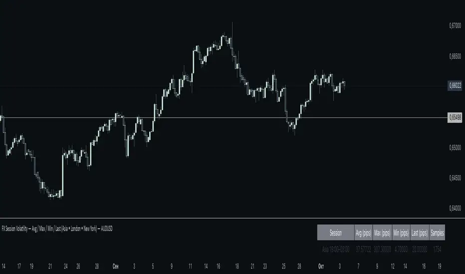 Avg / Max / Min / Last (Asia • London • New York) for ForEx