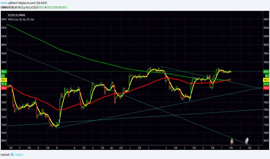 For Crypto USD pairs on Coinbase. Position is phased according to the yellow lines percentage between the red and green lines. When above both the position is 1. With below the both position is 0.