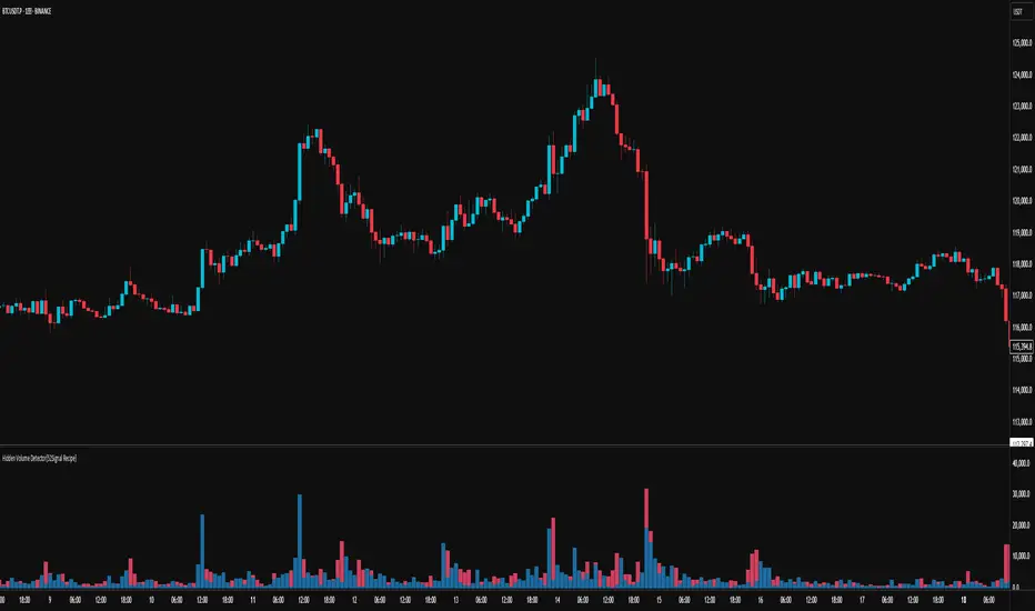 52SIGNAL RECIPE Hidden Volume is an innovative indicator that visualizes the hidden buying and selling strength behind the conventional volume candles. By analyzing the relative proportion of buying and selling within each candle’s price range, it splits the total volume into buy volume and sell volume. Displayed as color-coded bars (blue for buying, pink for selling) in a separate panel below the chart, it provides clear insight into the market’s buying and selling pressure.