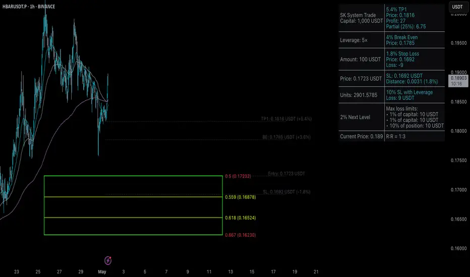 Break Even & TP1 Calculation: Provides the percentage values for when to move your SL to break even and the first TP level.