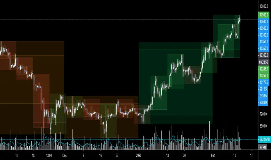 - Highlight the top & down breaches of higher timeframe resolution candles: Daily breaching last Weekly range, and/or the Weekly the Monthly one