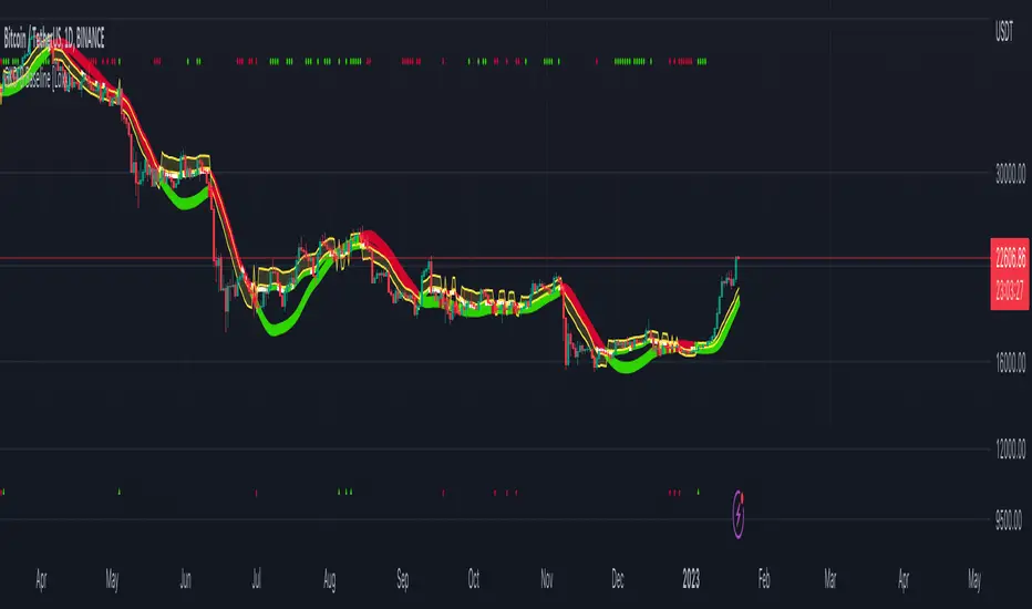2. Baseline - a moving average to identify price trend (such as "Baseline" shown on the chart above)