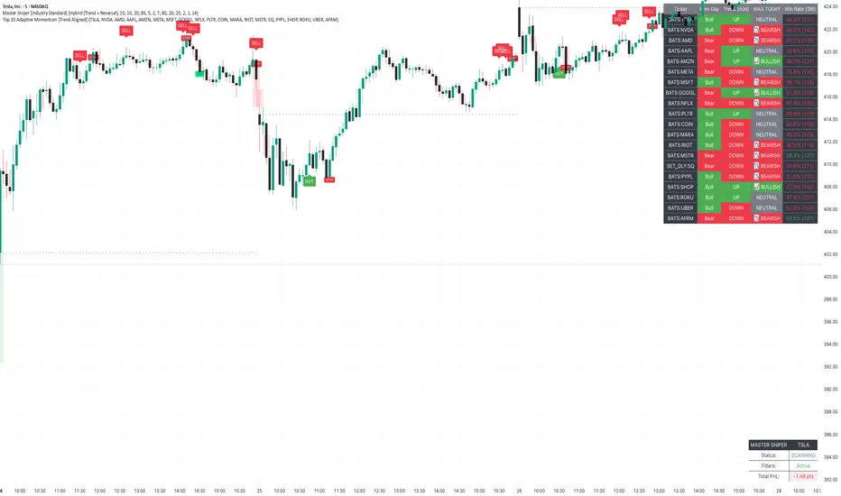 To effectively use the Top 20 Adaptive Momentum script, you need to treat it as a Pre-Market Screener. It performs the heavy lifting of analyzing trend, momentum, and historical probability instantly, giving you a "Cheat Sheet" for the trading day.
