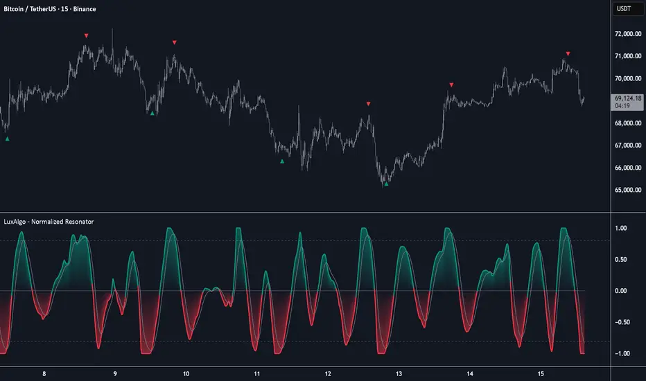 The Normalized Resonator indicator provides a specialized bandpass oscillator designed to isolate specific market cycles while maintaining a normalized scale for overbought and oversold analysis.