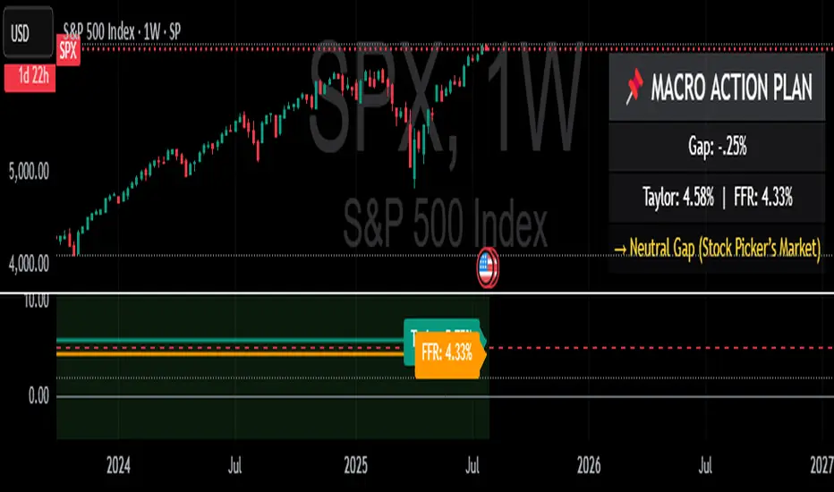 The gap between the Taylor estimate and actual rate helps assess potential macro pressure on markets, yields, and risk assets.