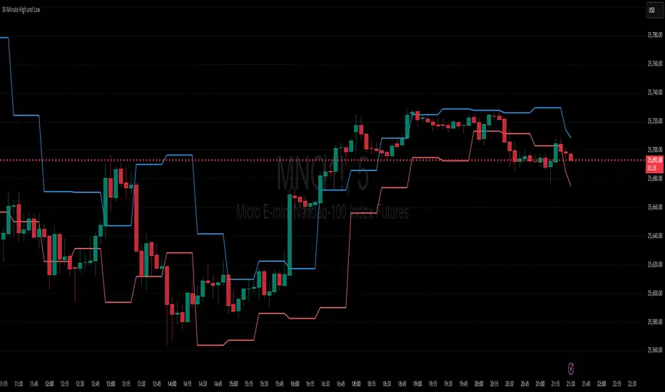 • Automatically pulls the previous 30-minute candle using higher-timeframe HTF requests