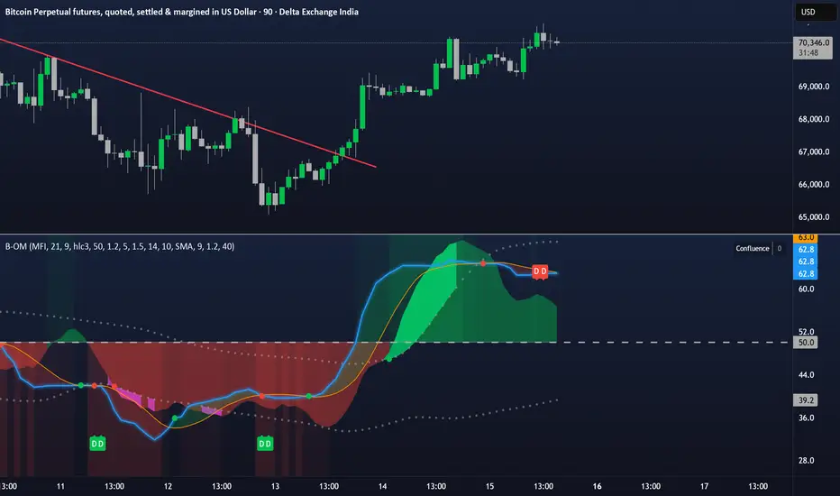Brahmastra Oscillator Matrix is a professional-grade, multi-dimensional market analysis system designed to decode market momentum, liquidity flow, and trend exhaustion in a single panel. By synthesizing Smart Money Flow, Adaptive Momentum (HyperWave), Volatility Thresholds, and Divergences, it provides traders with a complete "matrix" of market conditions.