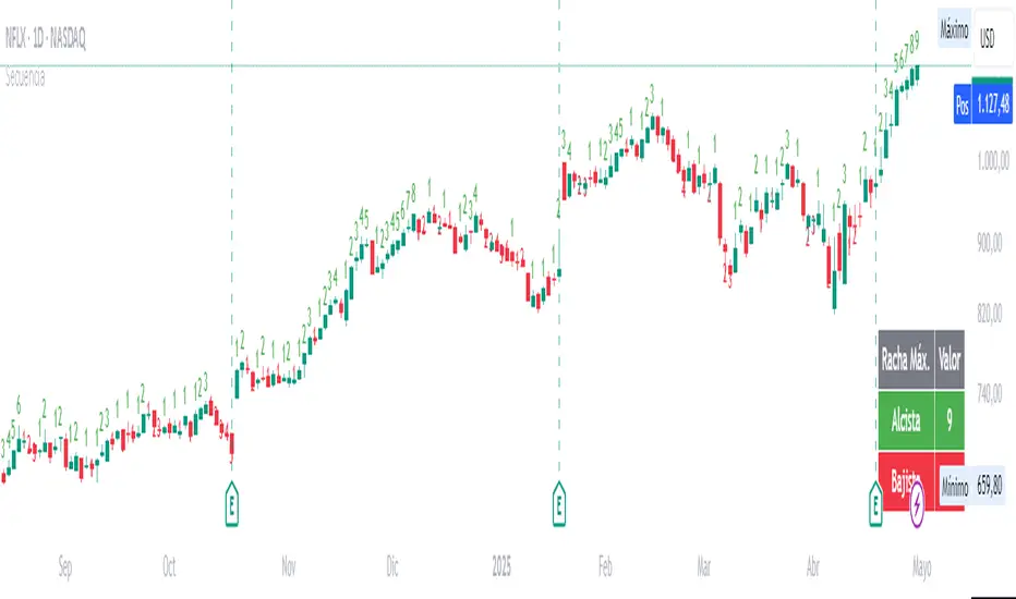 Este indicador es una herramienta valiosa para traders que buscan confirmar tendencias, identificar posibles agotamientos o simplemente entender la dinámica del precio en un vistazo. ¡Pruébalo y descubre las rachas del mercado!