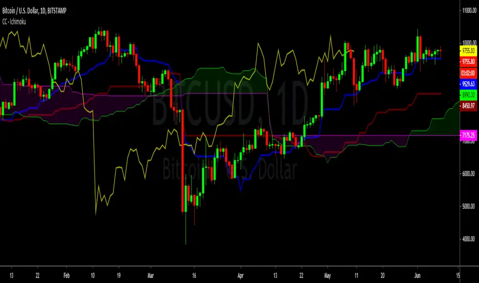 The Ichimoku Cloud is designed to measure both momentum and trend. This script is optimized for **Cryptocurrency** by default but the settings can easily be adjusted from the Input Window to trade on any asset.