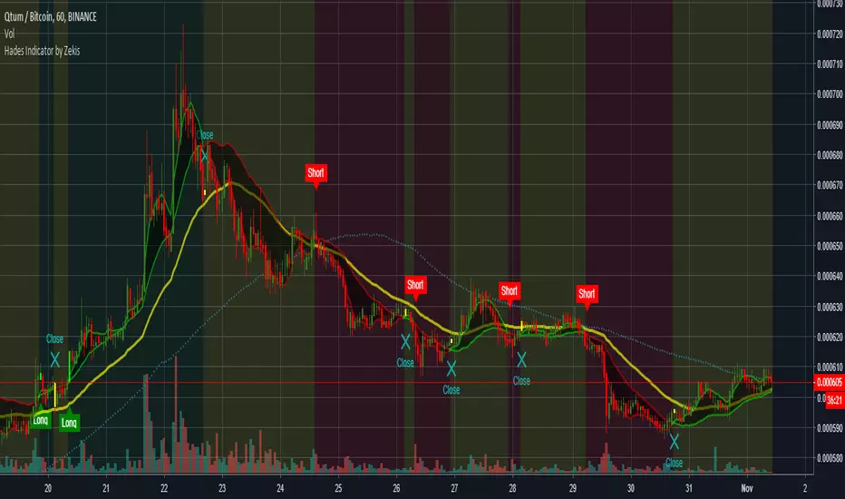 The base of Hades Indicator is calculated from crossing of two moving averages to establish the trend and another two moving averages for entries and exits or longs and shorts.