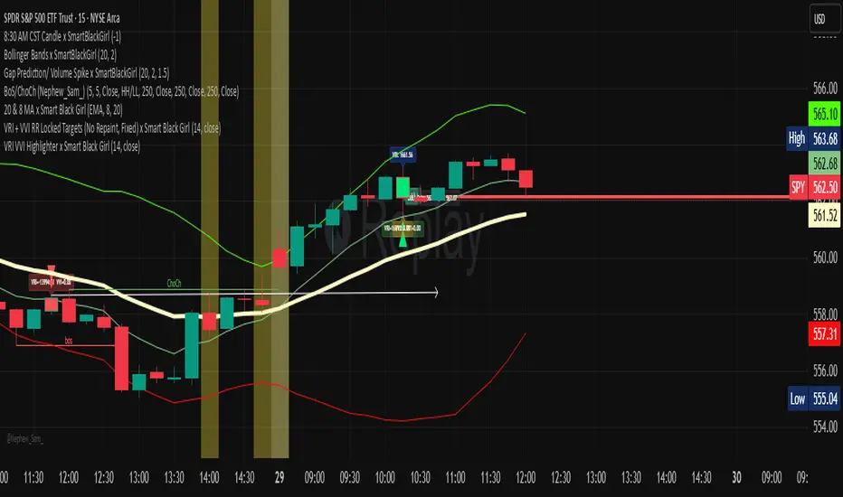 Purpose: a modern, visually clean indicator built to help traders identify VRI (Volume Reversal Index) and VVI (Volume Volatility Index) confirmations directly on the price chart—designed with precision and style under the Smart Black Girl collection for intuitive, confident market execution.