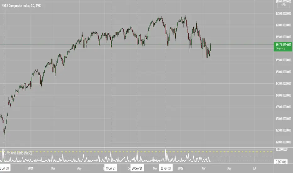 From some deduction, I see that it was basically looking at the ratio of down by up volume on the NYSE exchange; he had a few levels marked as well (which I've also marked on this indicator).