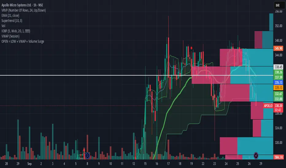 TradingView Pine Script that scans for OPEN = LOW, confirms VWAP support, and checks for volume surge — tailored for your intraday breakout strategy
