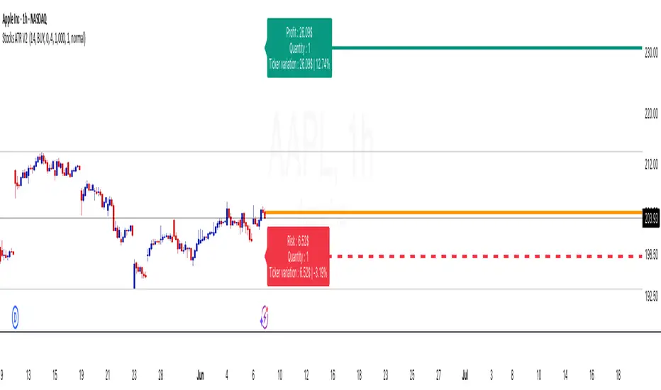 “Stocks AT SL V2” is a risk management indicator designed to help traders define dynamic stop-loss levels based on actual market volatility and advanced statistical analysis of price movements.