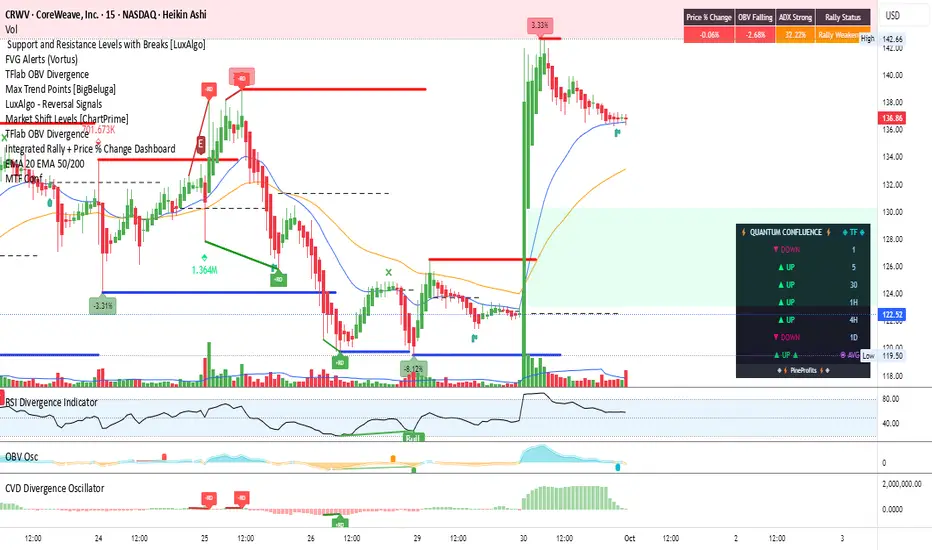 Maintains existing features: Price % Change, OBV trend with % change, ADX value, and Rally Strength visualized in a configurable dashboard.