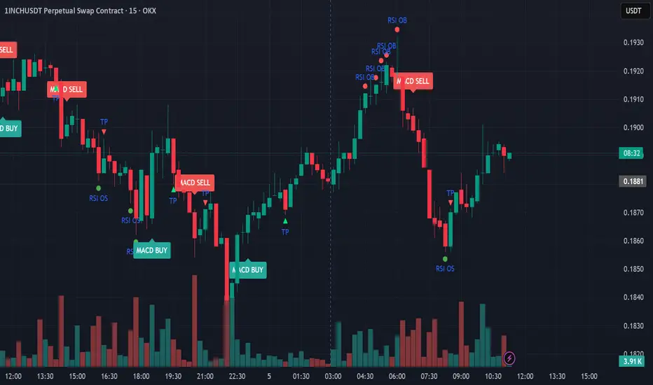 Smart Histogram Take-Profit logic – automatically detects the exact moment bullish/bearish momentum starts to weaken after a strong move and marks a precise TP level (one TP per trade – no repainting, no multiple signals)