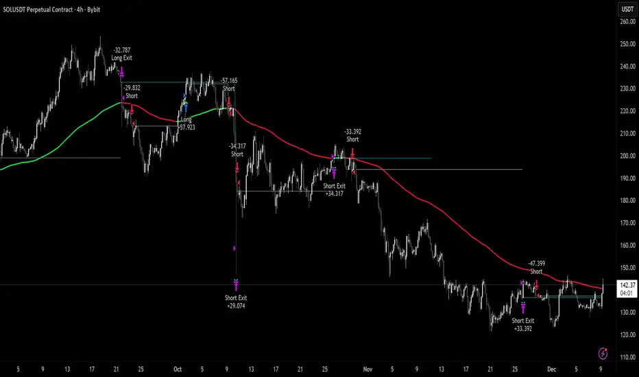 Works on any liquid market - crypto, forex, stocks, futures. Higher timeframes (4H, Daily) tend to produce cleaner signals than lower timeframes.