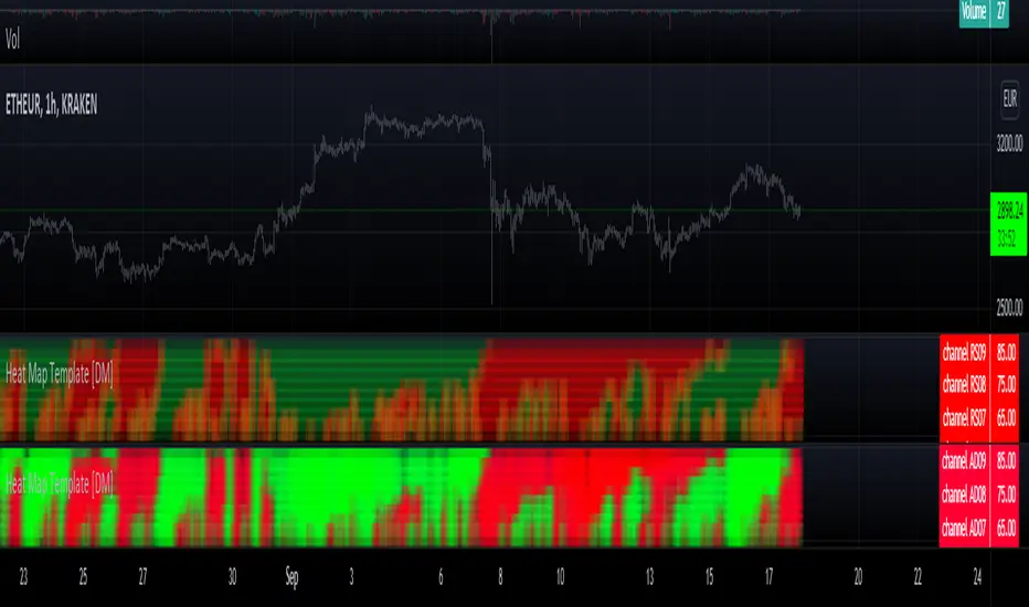 The source for heat map is an RSI of various lengths which are described in the footer of the script