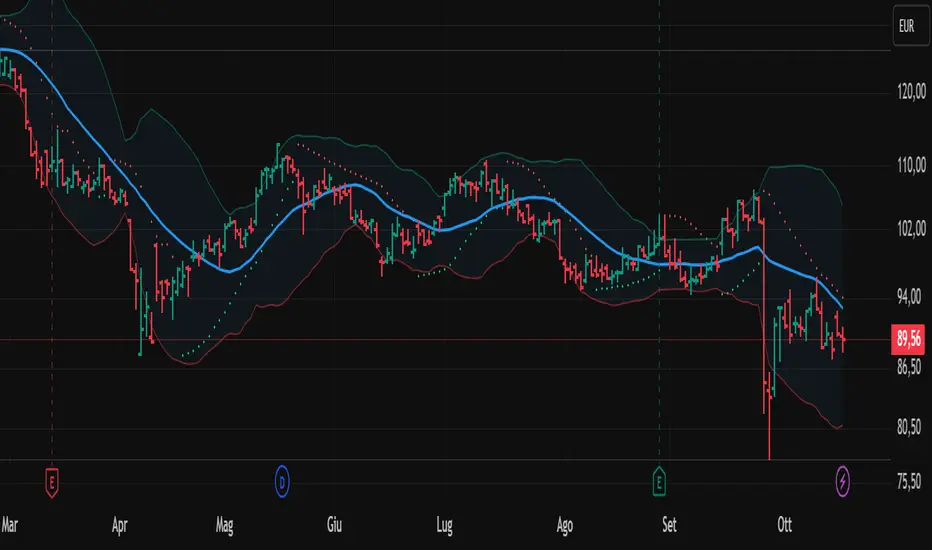Bollinger Bands measure market volatility and provide dynamic support and resistance levels. The space between the upper and lower bands is filled for enhanced visual clarity.