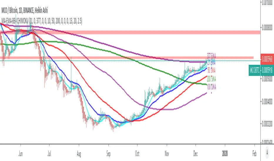 Moving Average, Exponential Moving Average, Displaced Moving Average, Ichimoku, Bollinger Bands and Support / Resistance