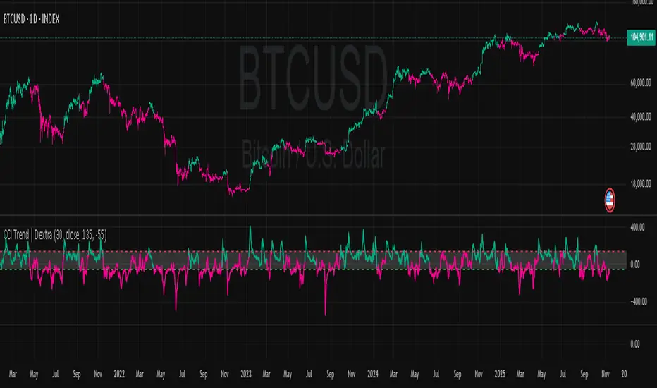 A smart, noise-filtered CCI that transforms chaotic oscillations into clear trend states. Instead of flipping constantly, CCI Trend locks into bullish or bearish mode only when momentum truly breaks out — using hysteresis to eliminate false signals.