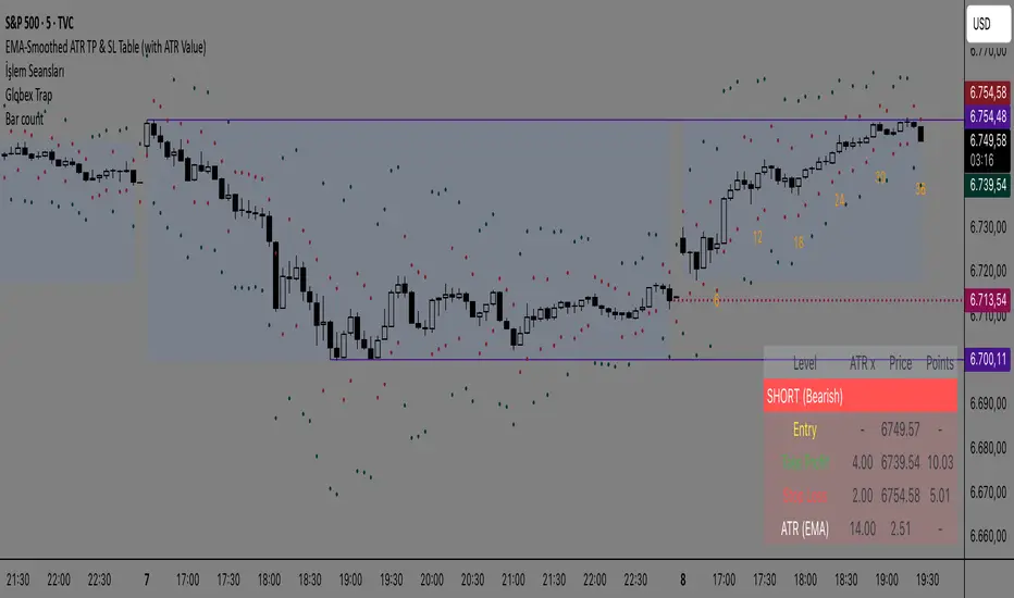 Simple tool for creating the stop loss and take profit targets multiplied by ATR value.