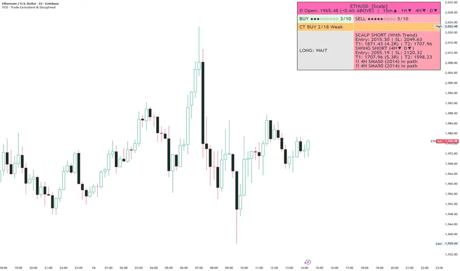 # TCD - Trade Consistent & DisciplinedMulti-timeframe trading dashboard that scores the market from both bull and bear perspectives, detects counter-trend exhaustion, and generates trade setups with specific Entry, Stop Loss, and Target levels.